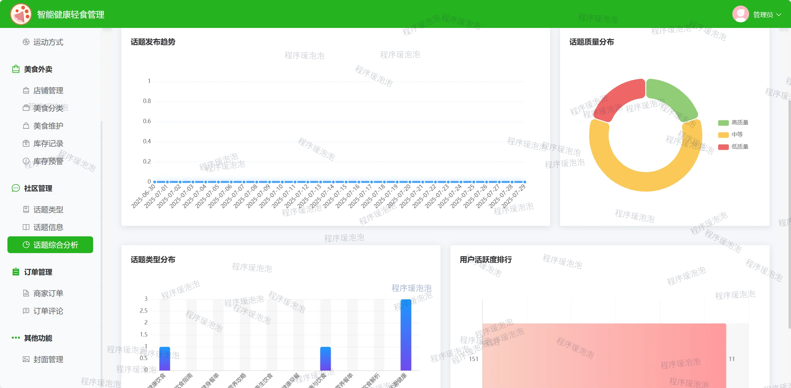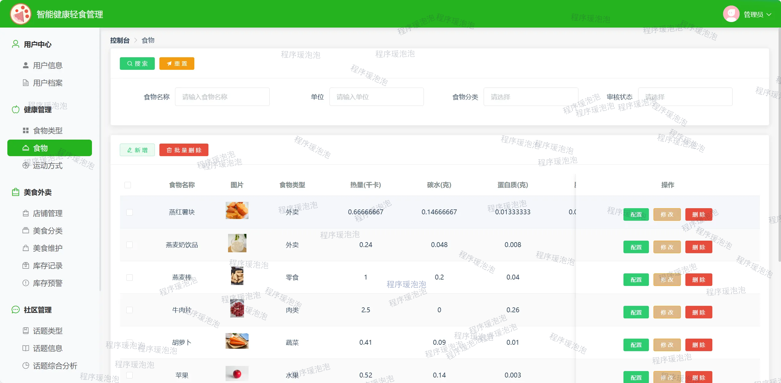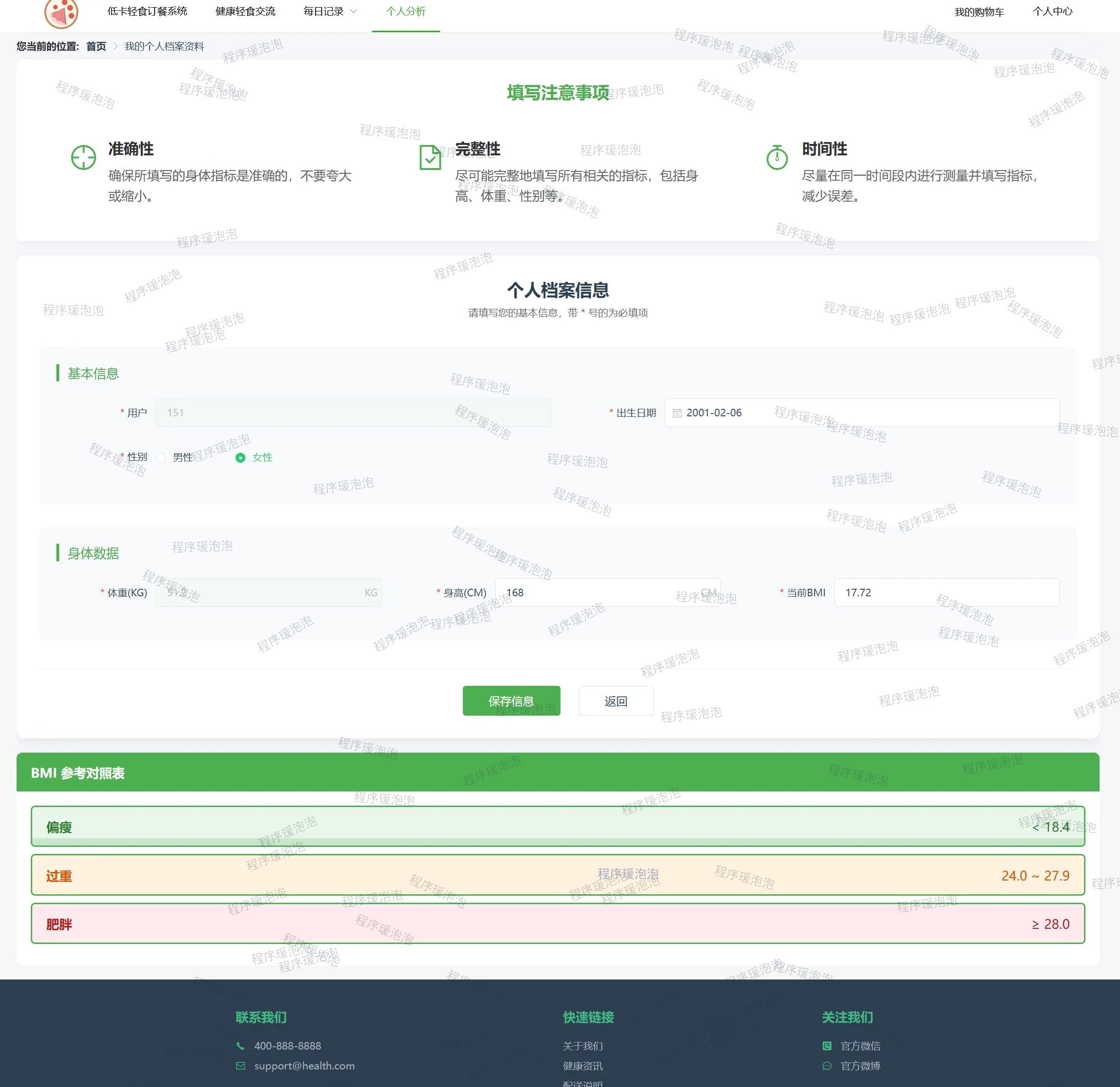基于SpringBoot+Vue的智能健康饮食管理系统(TDEE算法、WebSocket实时通讯、协同过滤算法、支付宝沙盒支付、Echarts图形化分析)