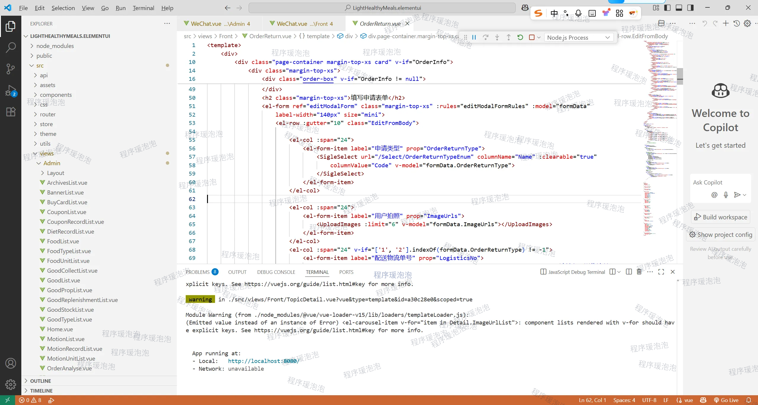订单分析界面使用el-card展示内容,通过el-row和el-col进行布局管理。summary-list区域展示今日订单、7天订单等统计数据,每个统计项有对应的图标、标题和数值,且背景有不同的渐变样式。利用el-card分别展示四个图表,包括季度销售分布、最近30天总收益趋势、24小时销量分布和热门美食销量排行。从Vuex中获取Token、UserInfo等数据,用于API请求时传递店铺ID 等信息。在mounted钩子函数中调用多个API 方法,如GetOrderSummaryDataApi获取订单统计数据,GetOrderIncomeDataApi获取订单收入数据等。通过Echarts技术生成各类图表。采用类似面积图的形式展示季度销售分布,折线图展示最近30天总收益趋势,结合柱状图和折线图展示24小时内销量情况。柱状图展示不同美食的销量排行情况。