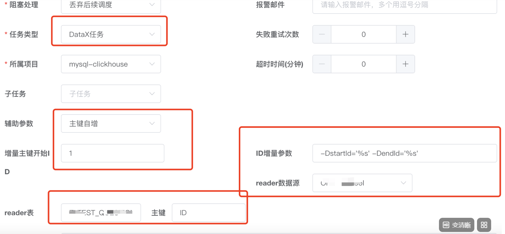 - 3.增量主键开始ID选择,即sql中查询ID的开始ID,用户使用此选项方便第一次的全量同步。第一次同步完成后,该ID被更新为上一次的任务触发时最大的ID,任务失败不更新。