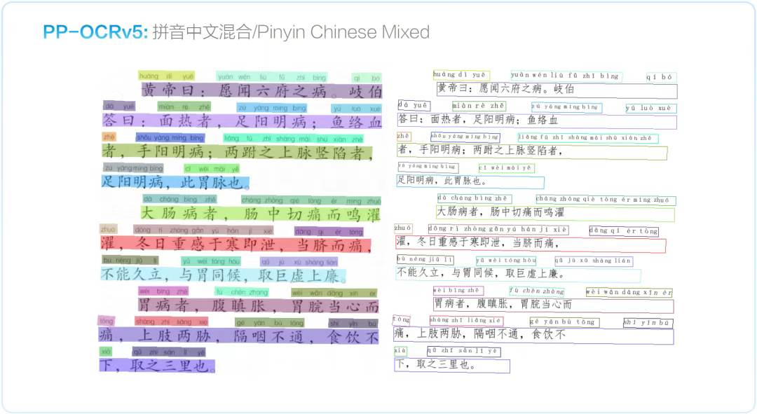PP-OCRv5 现已全面支持 42 种语言识别,较上一代模型实现了跨越式升级。其识别场景广泛覆盖印刷体、手写体、通用文本、拼音、古籍、生僻字等多个高难度领域,并在识别精度上实现全方位显著提升,重新定义了多语种OCR的技术标杆。