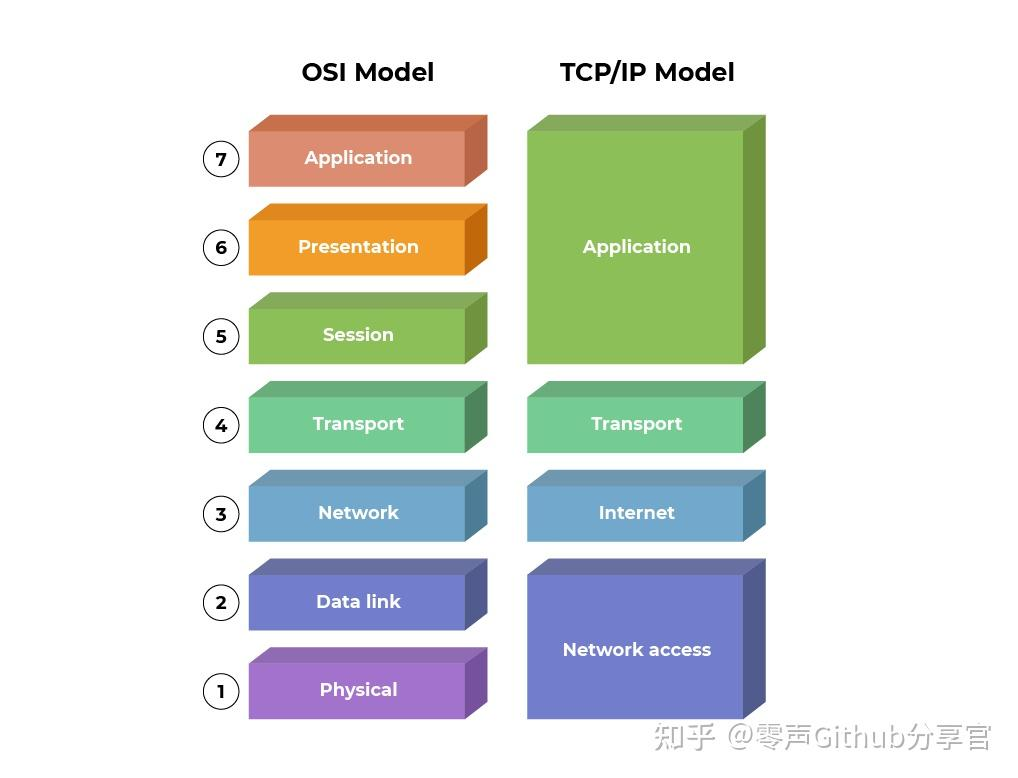 七层模型是理解网络功能划分的经典抽象,是从最底层物理线路到最顶层应用协议。