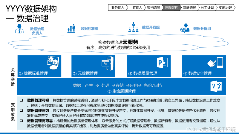数据架构是数字化转型的核心所在。它关注数据的内在结构、关联性和流动路径,建立统一的数据标准和管理规范,实现数据的集中存储、共享和互通。通过数据分析和可视化技术,企业能够挖掘数据价值,为业务决策提供有力支持,同时确保数据的安全性和合规性。