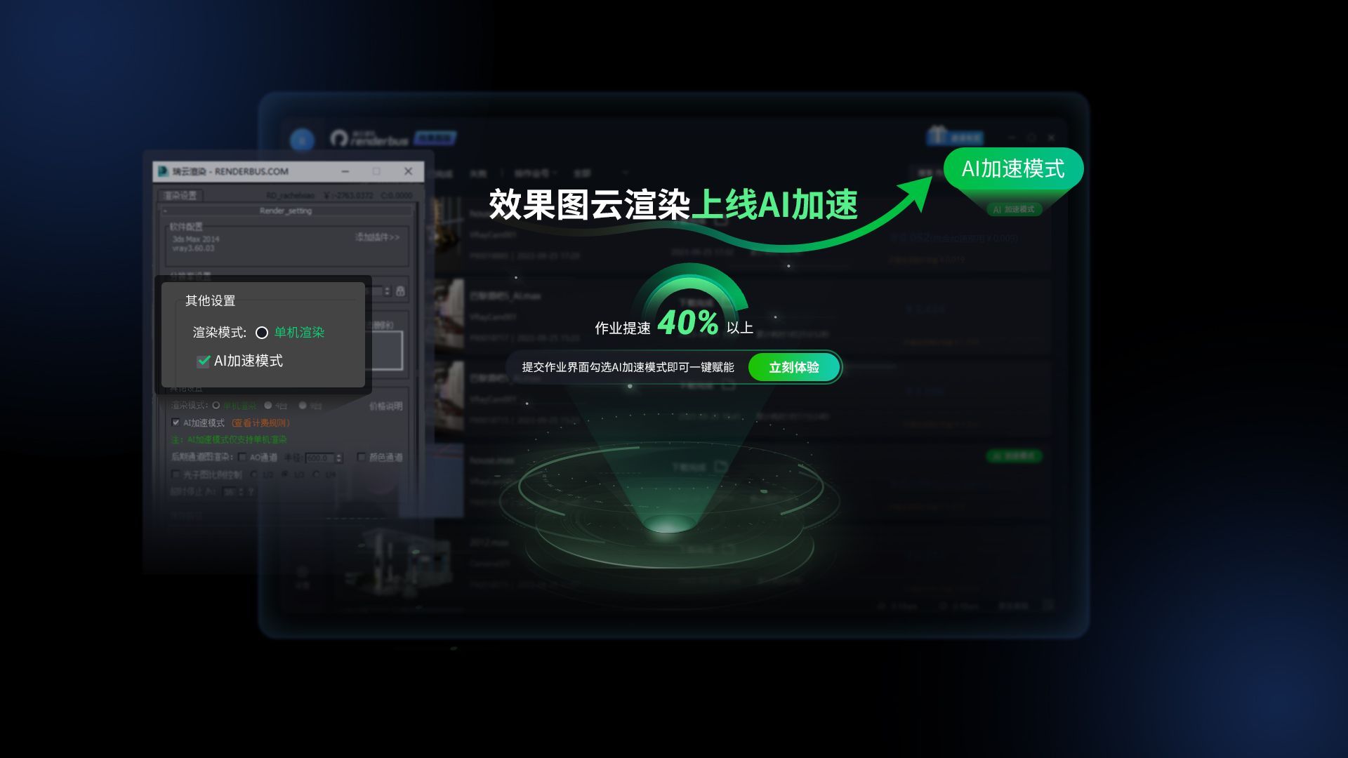 瑞云AI加速技术同样已成熟落地效果图云渲染场景。在3ds Max中,用户通过「瑞云渲染插件」的「提交面板」勾选「AI加速模式」,可使效果图渲染效率提升超40%。