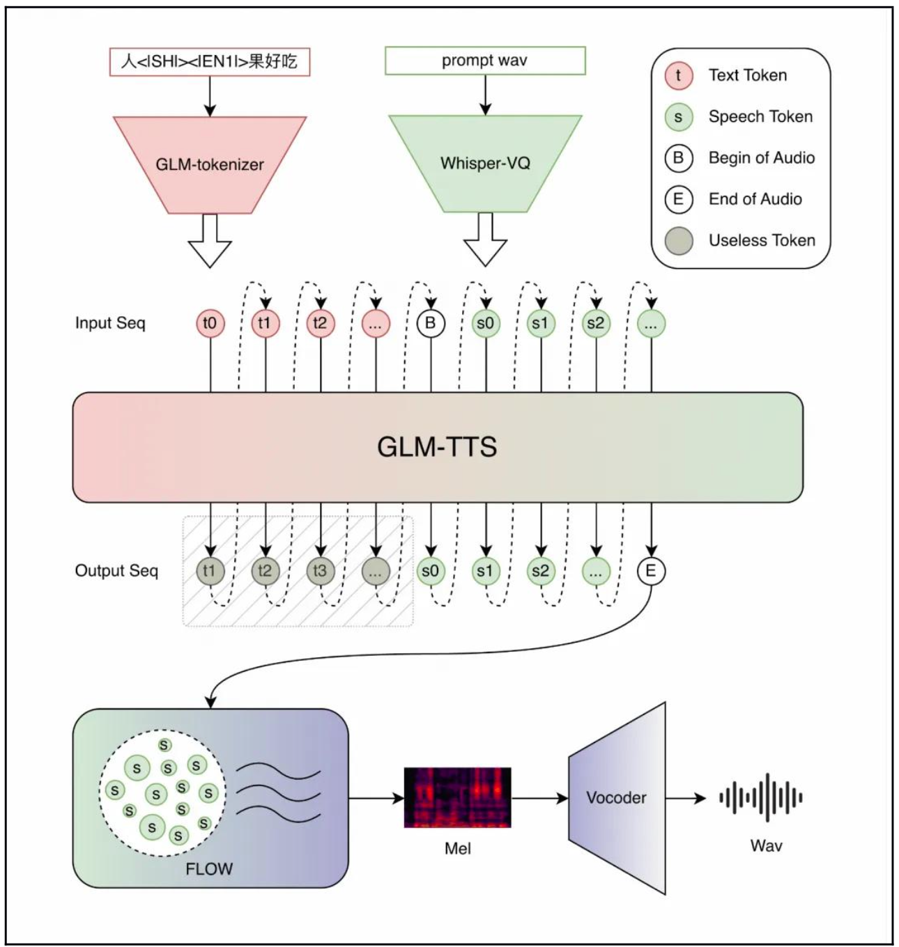 GLM-TTS 是一套基于两阶段生成范式(Text-to-token & Token-to-wav)的高质量系统 。为了解决传统 TTS 的痛点,智谱此次带来了多项“黑科技”: