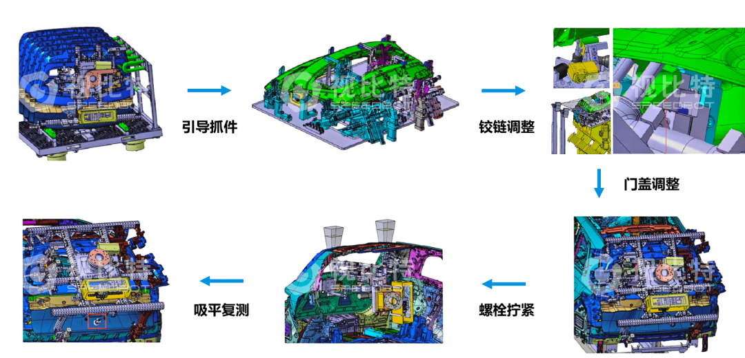 借助分布式视觉系统全面监控车身、门盖等关键尺寸误差,对铰链进行精确调整,形成完整工艺闭环,显著提升装调质量。