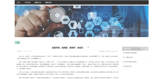 健康资讯:在健康资讯页面输入标题进行查询健康资讯详细信息,并进行点赞或收藏操作;如图5-4所示:
