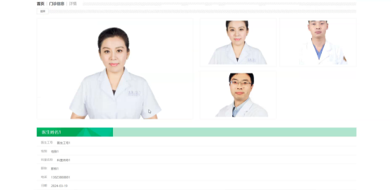 医生;在医生页面输入医生工号、医生姓名、科室名称、职称进行搜索、新增或删除医生列表,并对医生详细信息进行更多、改动或删除操作;如图5-9所示: