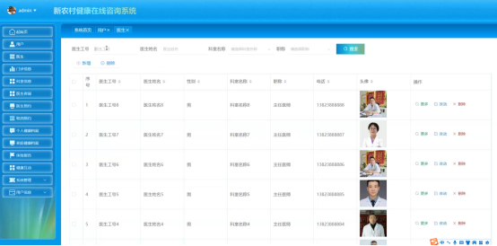 新农村健康在线咨询管理系统综合网络空间开发设计要求。目的是将传统管理方式转换为在网上管理,完成新农村健康在线咨询管理的方便快捷、安全性高、交易规范做了保障,目标明确。新农村健康在线咨询管理系统可以将功能划分为管理员功能,医生功能和用户功能。