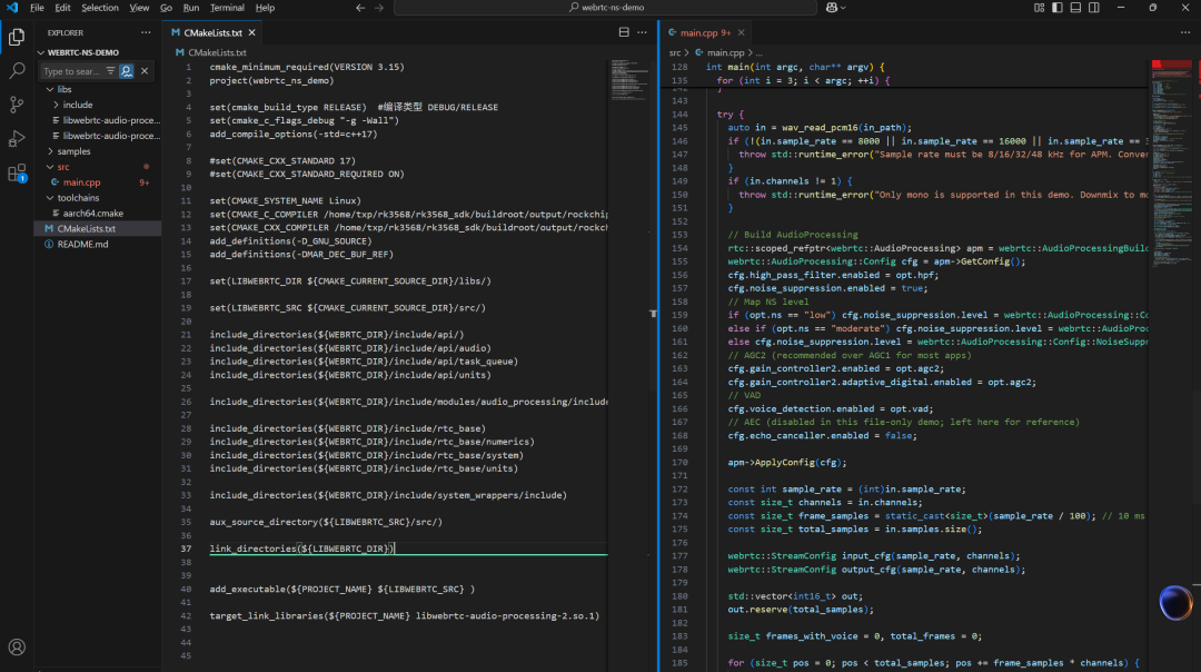 大家好,在上一篇文章里面,我已经把webrtc audioprocissing模块已经移植到了rk3568上,同时利用空闲时间,开始写demo进行验证ANS的降噪效果: