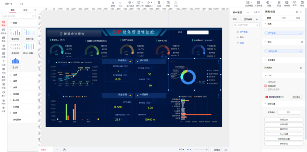 数据分析:内置超过50种可视化组件,通过可视化、拖拽式的配置界面,用户可便捷设置报表的样式、交互和布局,快速生成专业且炫酷的数据看板,支持实时查询、动态报表生成及即时分析,帮助用户高效挖掘数据价值,赋能业务决策。