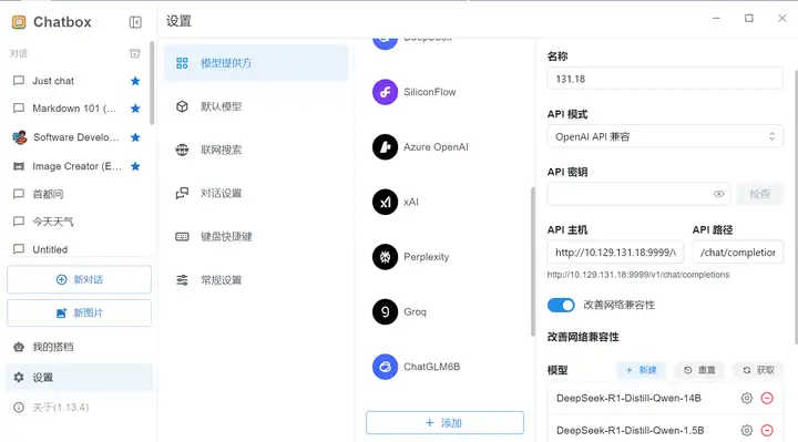 API主机:填写提供模型服务地址以及端口