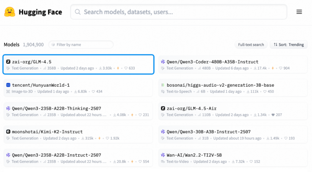 目前,GLM-4.5模型已经登顶国际开源社区Hugging-Face榜单全球第一。