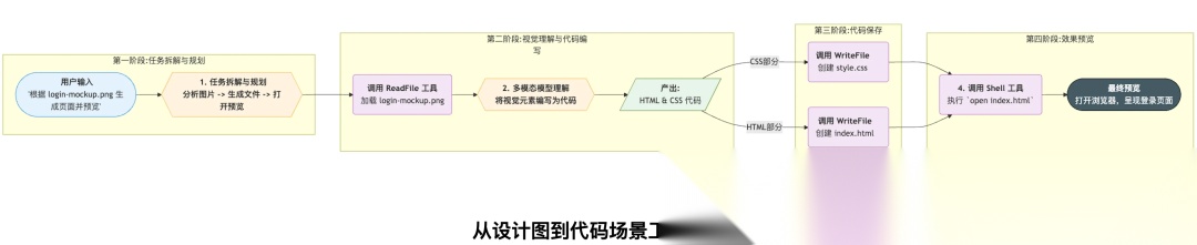 gemini-cli的决策与执行路径: 这是从视觉到代码,再到预览的自动化工作流。