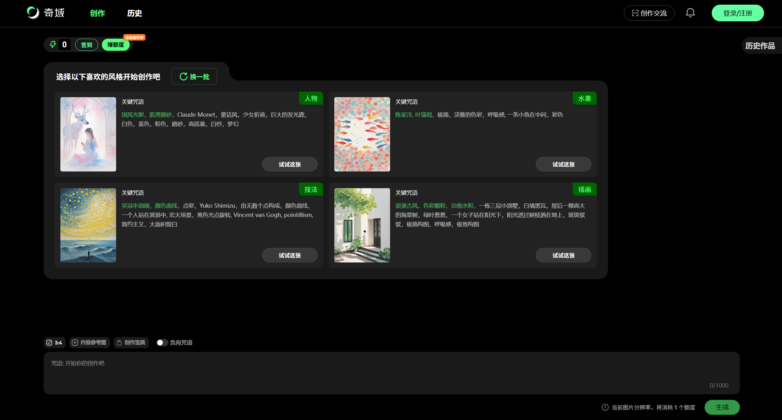 奇域AI的创作流程简单直观,适合新手快速上手: