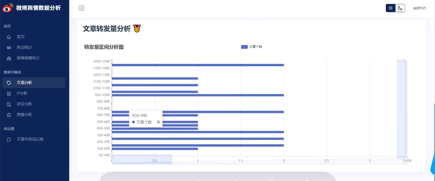 可视化呈现:通过柱状图或散点图展示高影响力博文,帮助用户快速识别引爆话题的“爆款”内容,分析其传播路径和影响力。