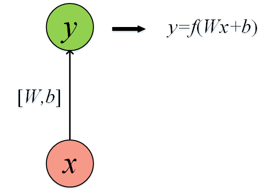 先来了解最简单的单层网络,看一下网络结构图,输入是x,输出是y,因此是1对1。