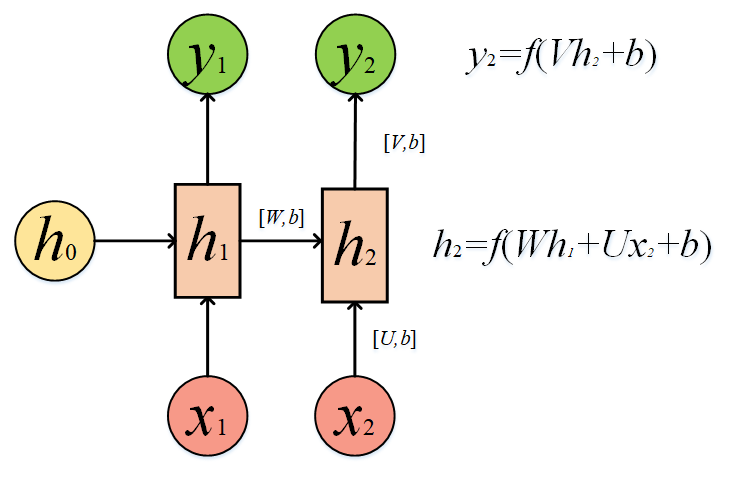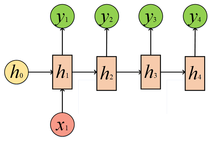 有了以上理解的基础,我们的输入不是N个吗,N个相同的结构进行叠加循环,我们就得到了RNN的经典网络结构。此时我们再回过头看开篇的那张图,此时的你应该也豁然开朗了,RNN的结构似乎也没那么难了。另外再说明一下,h0我们初始化为0。