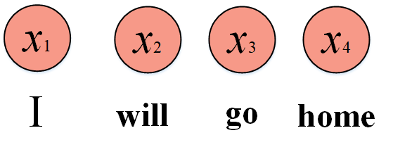 刚才我们的输入是单个输出也是单个,现在我们的输入不止一个,比如翻译问题,我们有多个单词,I will go home,此时我们把I will go home转化为x1,x2,x3以及x4。那么I will go home翻译为中方是我要回家,自然就是N to N问题了。