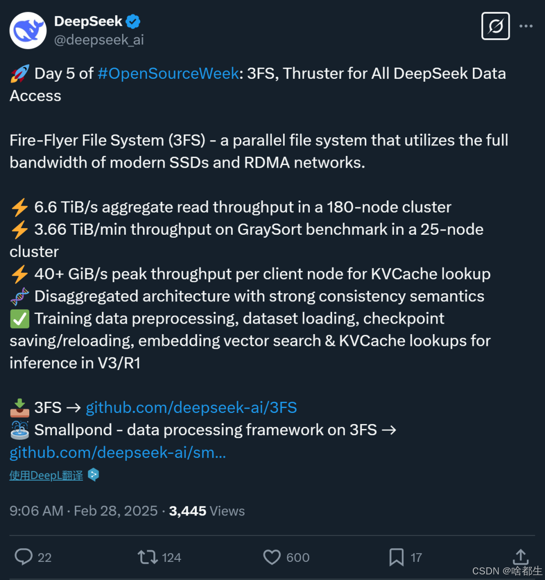 DeepSeek开源高性能文件系统3FS,数据处理速度大幅提升