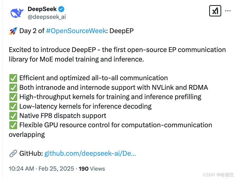 DeepSeek开源MoE训练推理EP通信库DeepEP,展现高效通信与优化能力