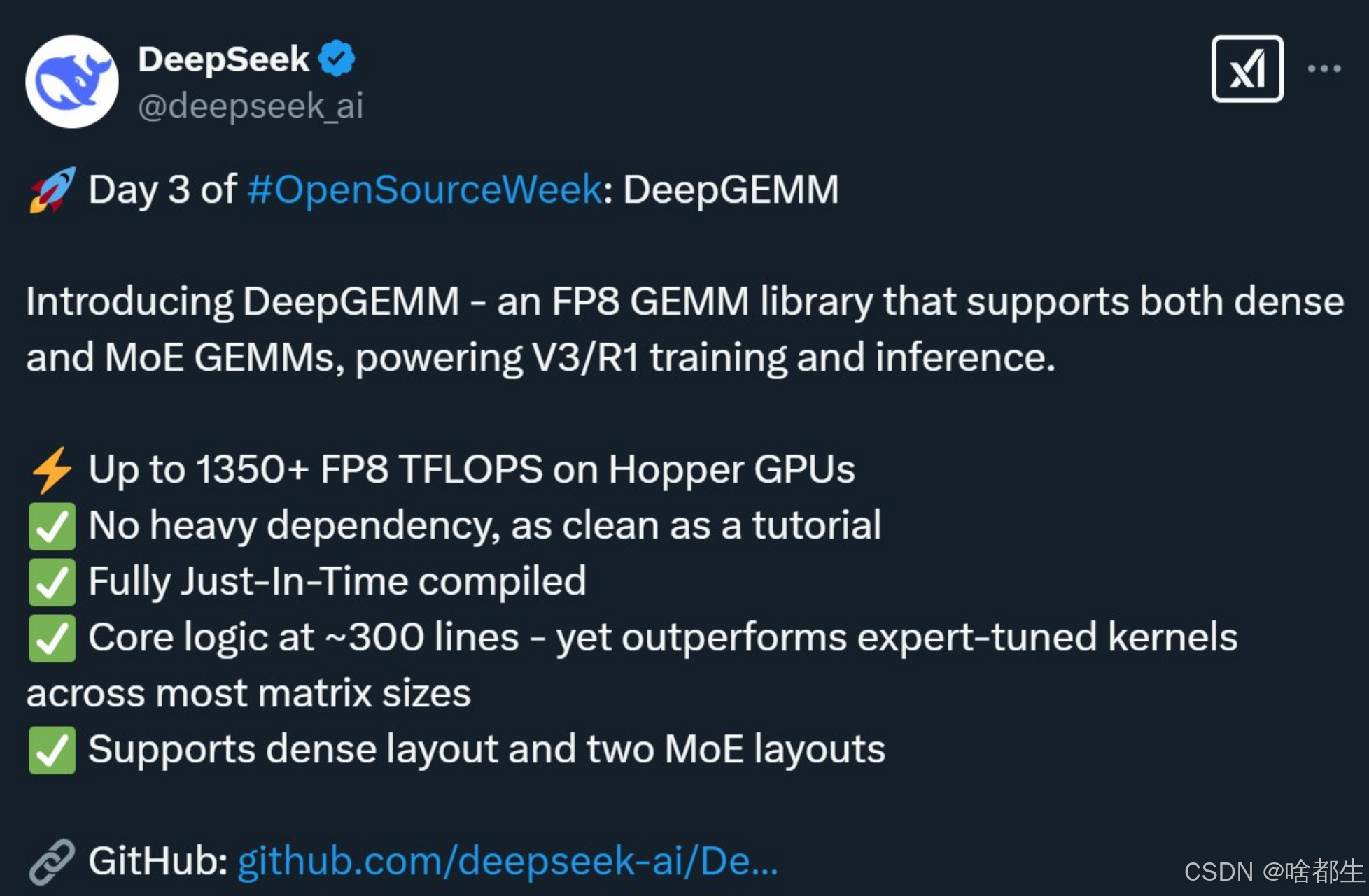 DeepSeek开源300行代码的通用矩阵乘法库,助力V3/R1加速,R2模型或提前发布
