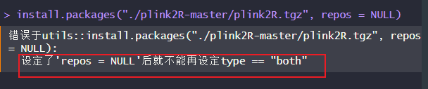 本地安装时,参数也一定要给对,因为这里边的type默认是both,我们设置了repos=NULL,还需要加上type = "source"