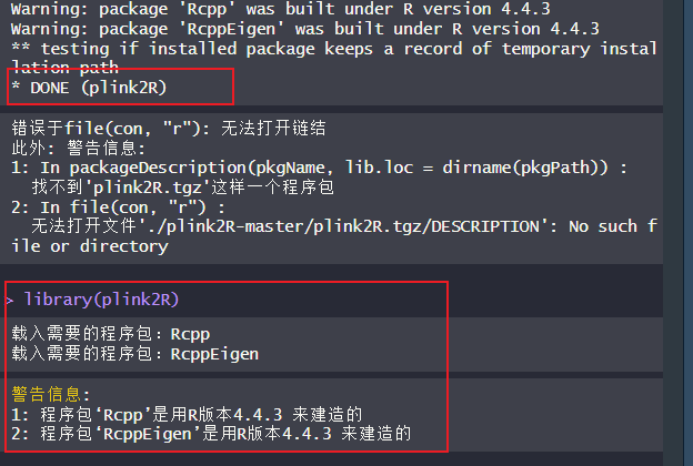 安装开始就是尝试使用install.package("plink2R")和BiocManager::install("plink2R")