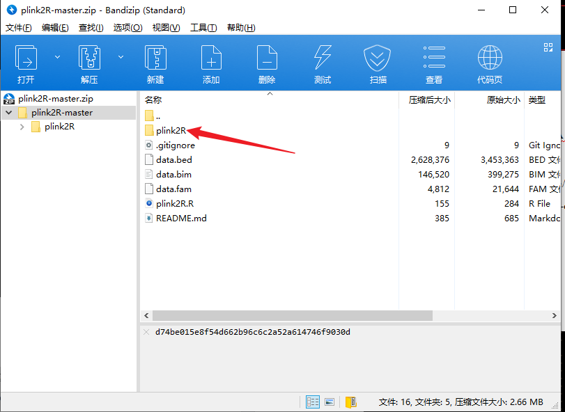 这是plink2R-master.zip中的文件内容,DESCRIPTION文件实际是在plink2R文件夹中,所以这个plink2R才是真正的安装包,将这个目录压缩然后再去R中本地安装。