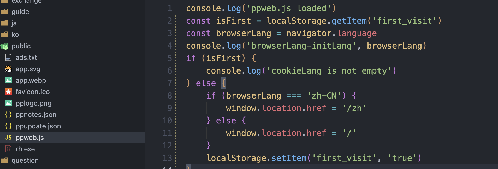 就像我的项目PakePlus的官网一样: pakeplus.com,第一次加载的时候,根据浏览器的默认语言,以后就不跟随了,用户选择什么语言就是什么语言,然后根据不同的语言,展示不同的提示内容。
