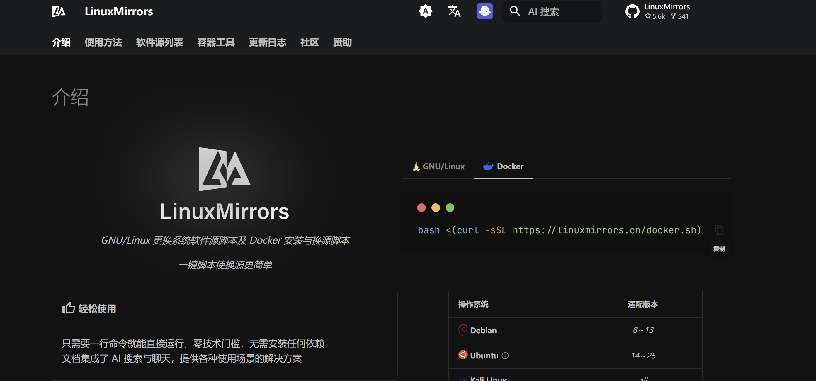 如果你的服务器在国内,还要记得更换一下docker的镜像源,不然拉取vocespace会很慢。我习惯用linuxmirrors的docker换源脚本: