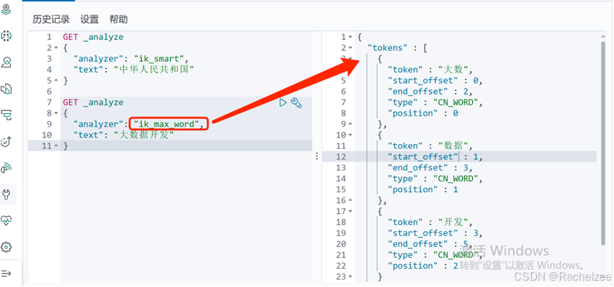 IK提供了两个分词算法:ik_smart和ik_max_word,其中ik_smart为最少切分,ik_max_word为最细粒度划分。