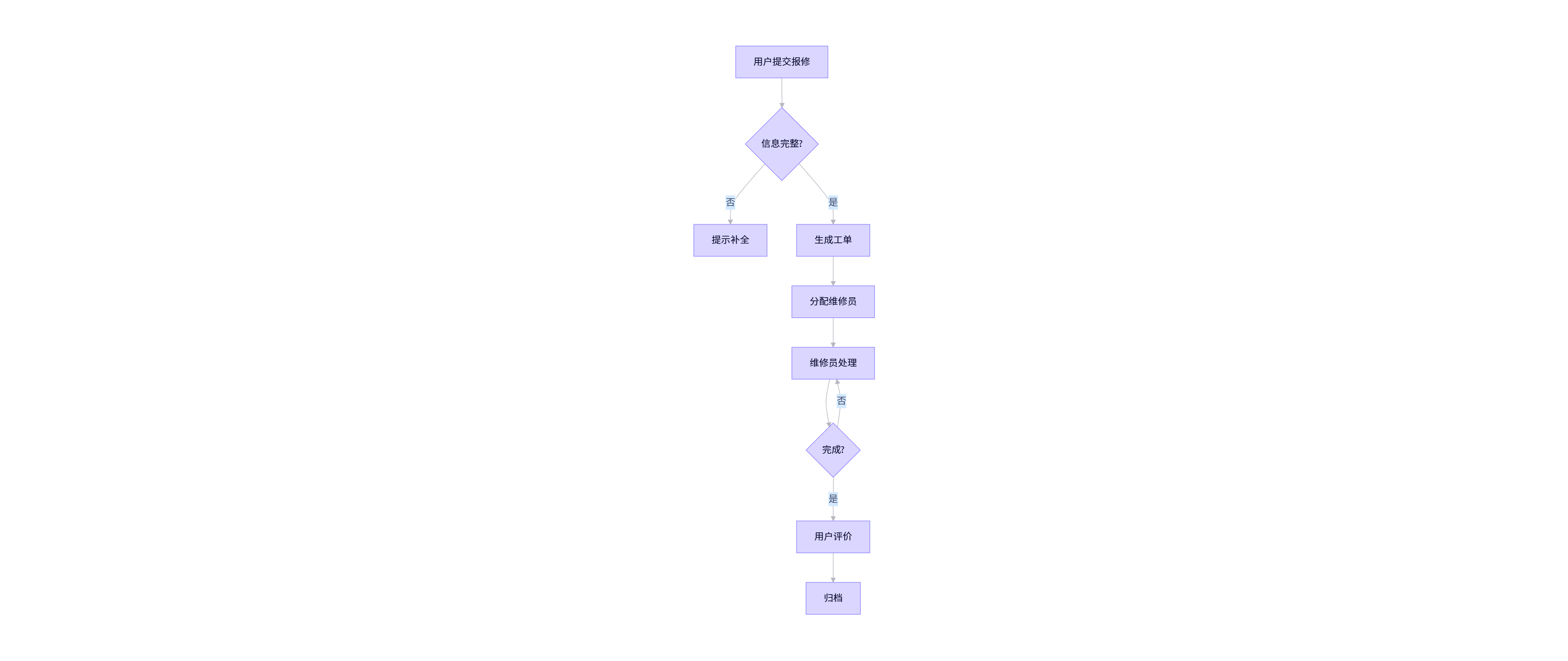 核心功能流程图(报修处理):