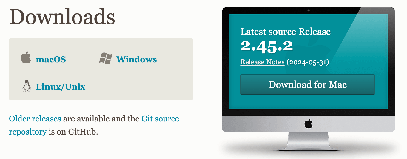 Git 各平台安装包下载地址为:http://git-scm.com/downloads