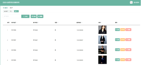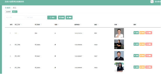 员工管理(工号、姓名、性别、电话、岗位、头像)