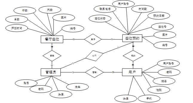 座位预约(预约编号、座位、日期、时段、用户、电话、状态)