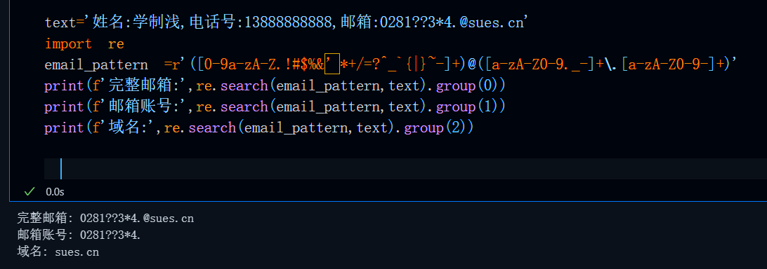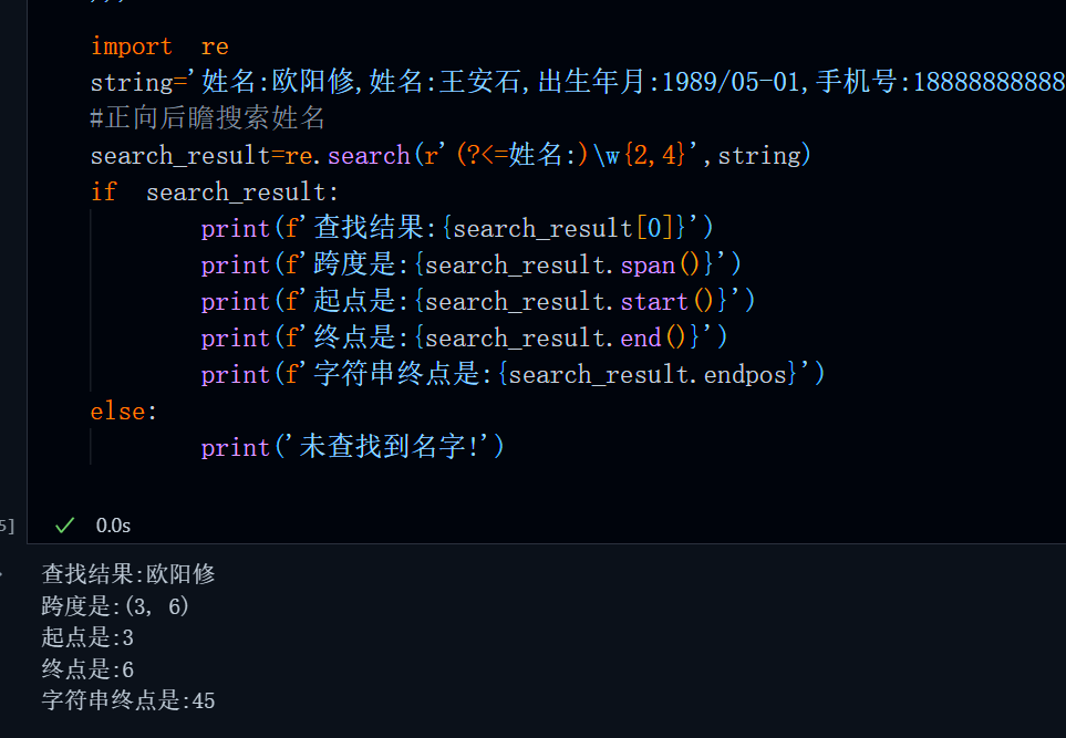 name_pattern=re.compile(r'(?<=姓名:)\w+')#正向后行断言,(?<=姓名:)\w+匹配 姓名:xxx(字母数字下划线) 这一字符串但不包含姓名:
