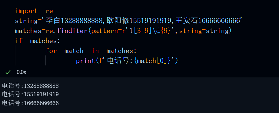 phone_num=re.search(pattern=r'1[3-9]\d{9}',string=string)
