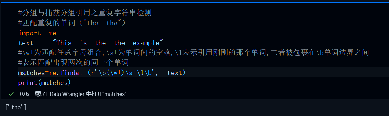 重复单词检测的原理其实很简单,就是匹配单词后通过引用的形式再匹配这个单词一遍,如果匹配成功,说明有单词重复,具体代码如下: