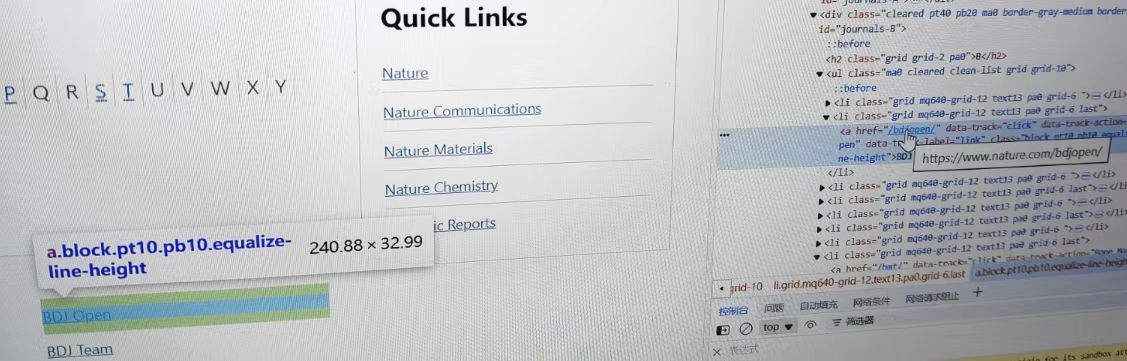 这里我们以爬取nature journal index内的所有子刊链接为例: