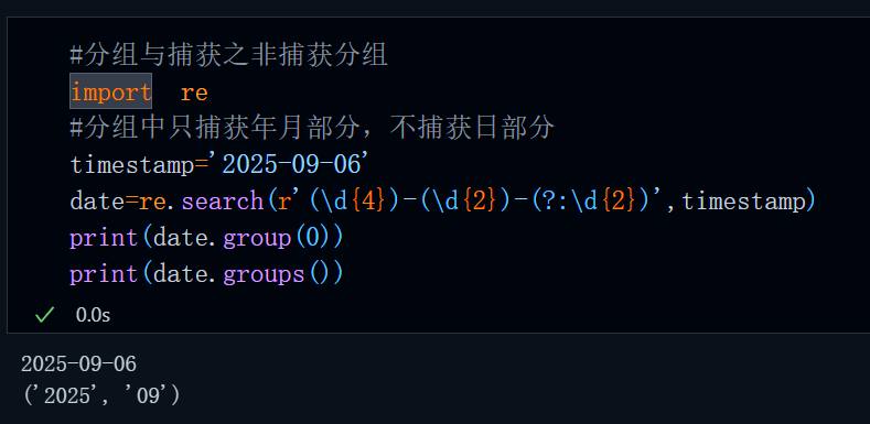 只要使用()将字符包括,那么正则引擎便会将()内的内容作为一个分组,而捕获与非捕获是指,我们使用()分组后,在最终的匹配结果中是否可以通过group(index)的形式获取到这个()内的具体内容,比如说:
