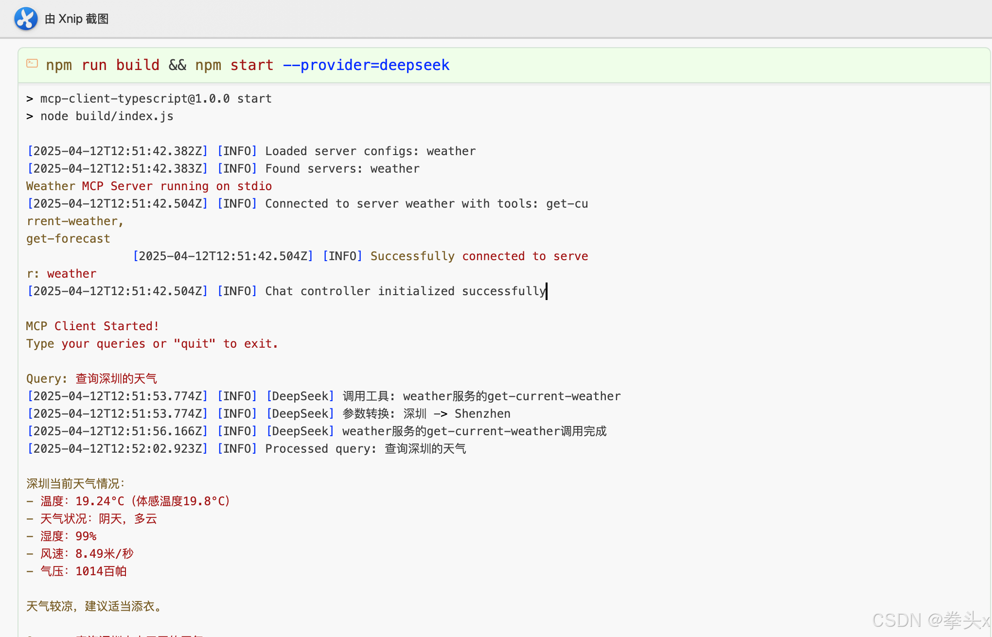 - 项目github地址:GitHub - fist-maestro/mcp-client-typescript