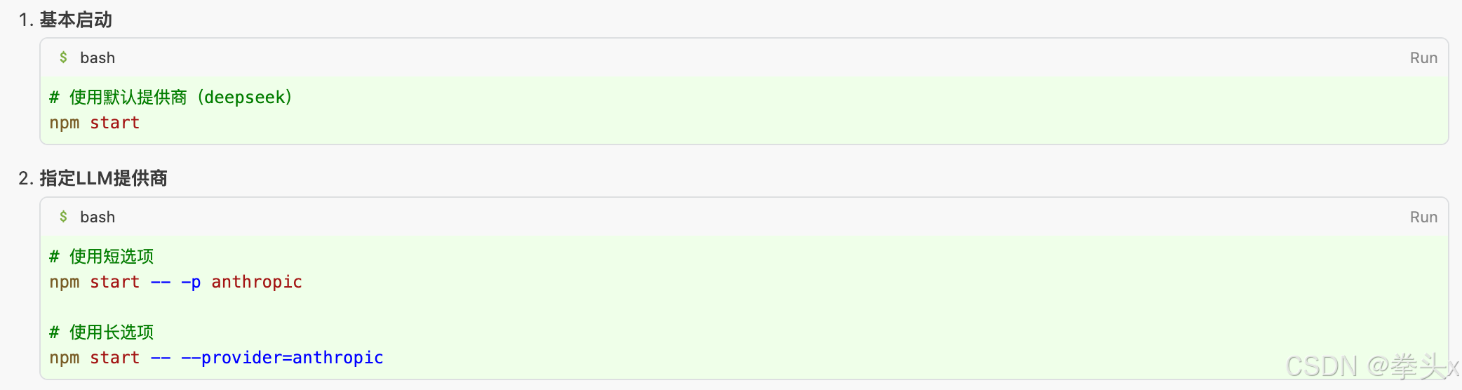 throw new Error('不支持的LLM服务商。请使用 --provider=deepseek 或 --provider=anthropic');