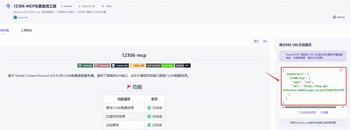 超过 3000+ 个中文托管 MCP;详情页右侧直接复制 SSE URL,部分服务需在“API Key”栏目填 Token |