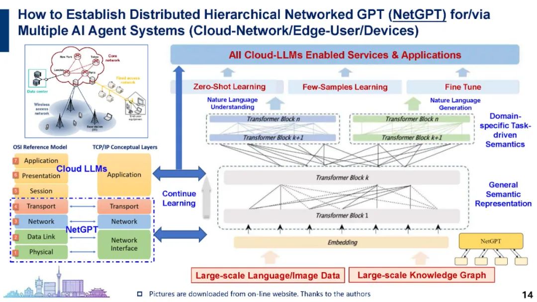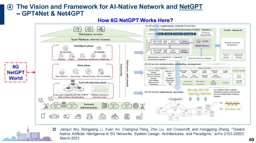 面向未来海量、无所不在的具身智能体,针对服务具身智能体的通信网络(6G)与大语言模型(LLM)相互融合并协同发展趋势,本报告将基于网络内生智能(AI-Native)思想和机制,阐述构建网络大模型NetGPT的相关方法、已有研究进展及具体实践。同时,围绕构建网络大模型NetGPT这一挑战性目标,介绍潜在的相关核心技术、关键算法和候选模型,并讨论复杂网络环境下如何高效实现网络大模型NetGPT的部署、