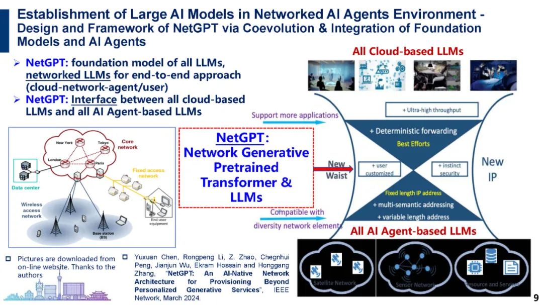 2025年3月27日,澳门城市大学数据科学学院张宏纲教授于清华大学跨学科交叉论坛“Tsinghua X Forum”发表“网络大模型NetGPT研究进展”:近年来,大语言模型(LLM)技术备受学术界和工业界关注,大语言模型与通信网络的融合也逐渐成为全球信息技术领域极为关注的前沿技术方向之一。面向未来海量、无所不在的具身智能体,针对服务具身智能体的通信网络(6G)与大语言模型(LLM)相互融合并协同发展趋势,本报告将基于网络内生智能(AI-Native)思想和机制,阐述构建网络大模型NetGPT的相关方法、已有研究进展及具体实践。同时,围绕构建网络大模型NetGPT这一挑战性目标,介绍潜在的相关核心技术、关键算法和候选模型,并讨论复杂网络环境下如何高效实现网络大模型NetGPT的部署、训练与推理。