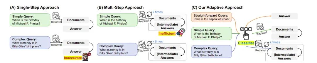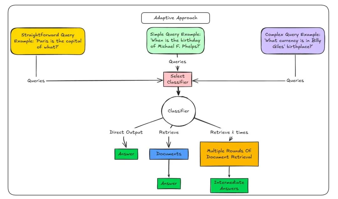 工作原理:此方法使用分类器来确定查询的复杂性并选择合适的策略: