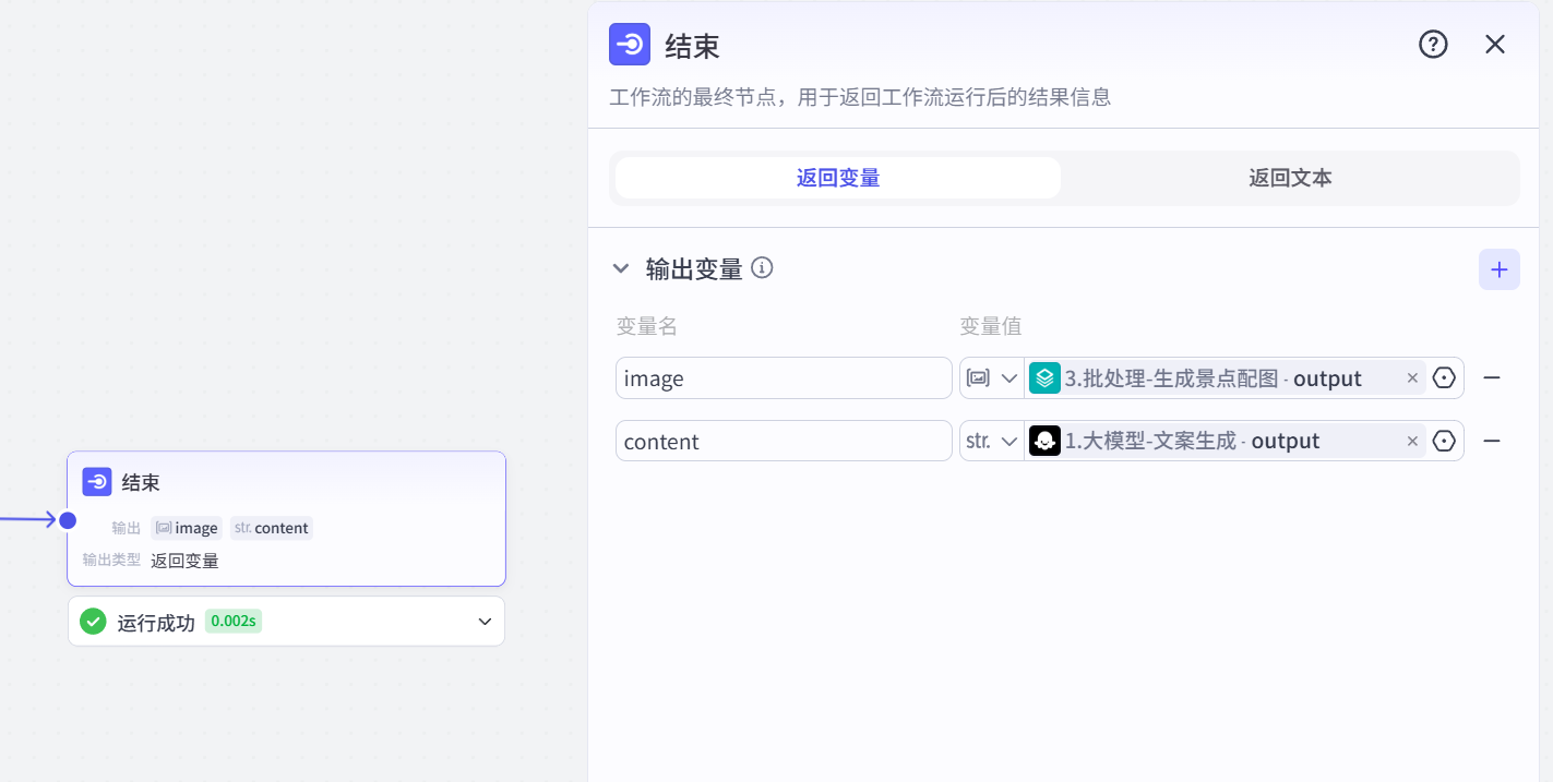 - input:引用“2.大模型”节点的输出