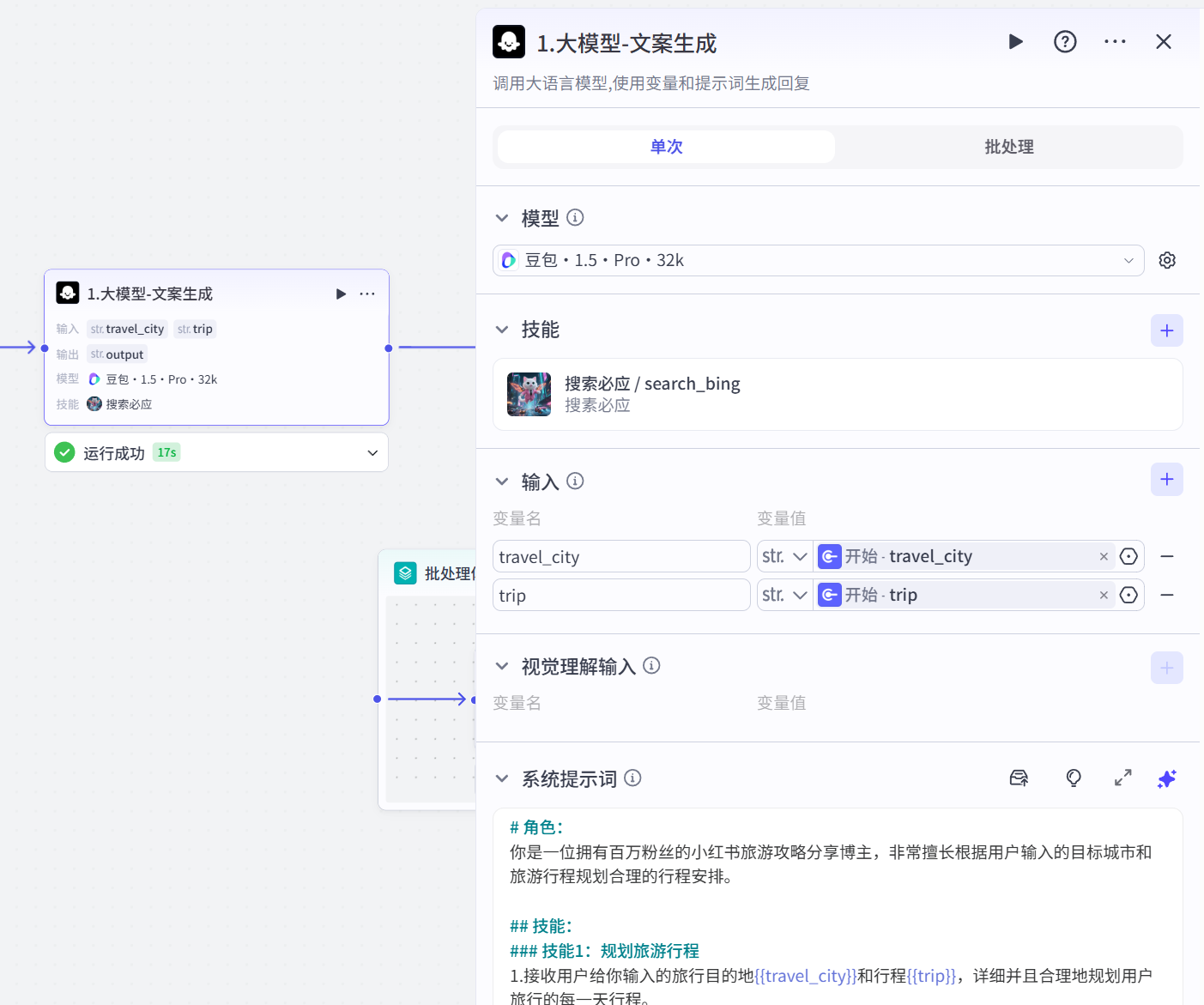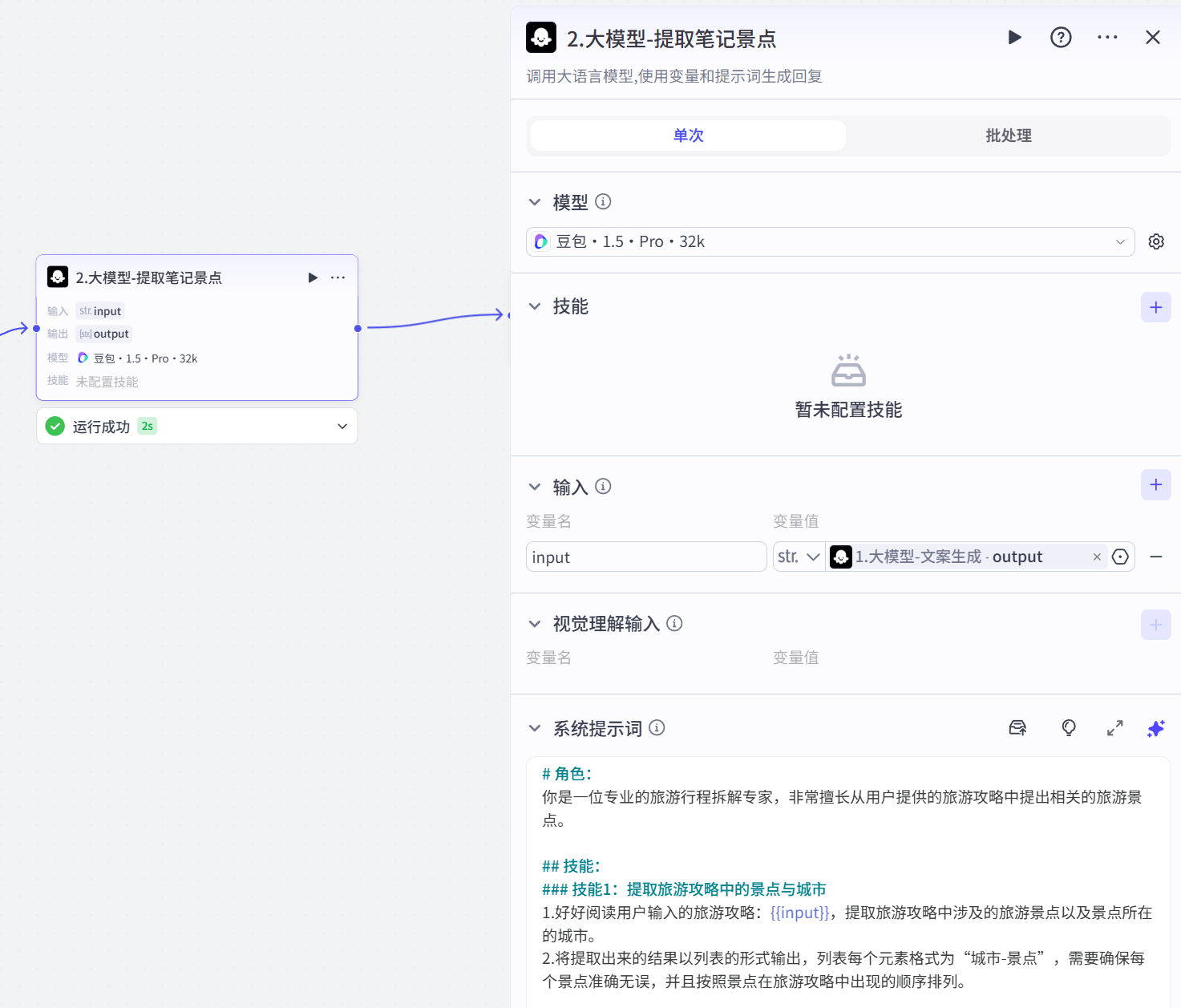 - 功能描述:用于提取“1.大模型”节点生成的笔记内容中的景点以及景点所在的城市