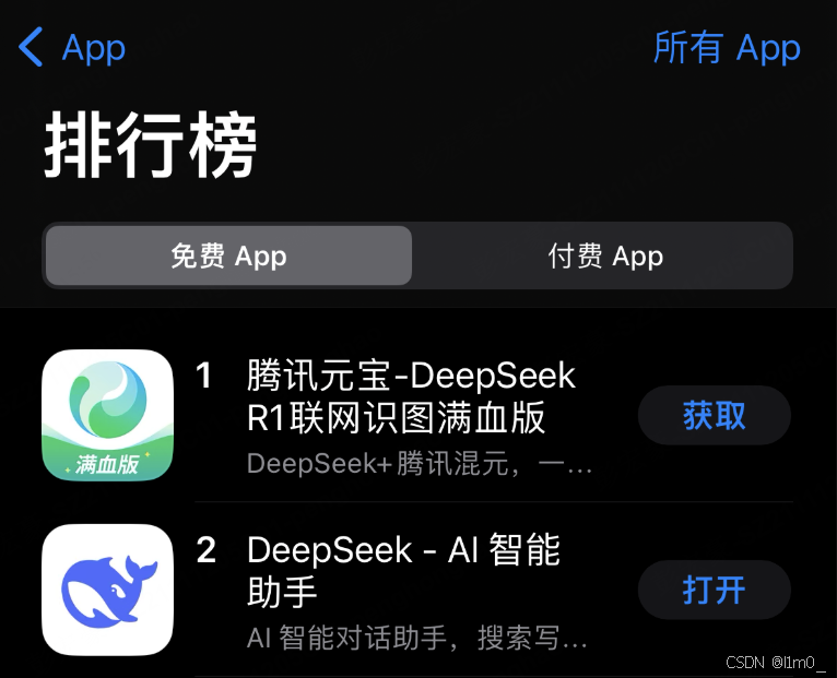 元宝去年上线后不温不火,今年乘着DeepSeek的东风,将DeepSeek集成到产品内,加之巨额的营销投入,近期一举超越DeepSeek原生应用,成为App Store排名Top 1的AI应用。