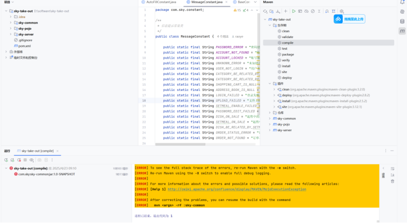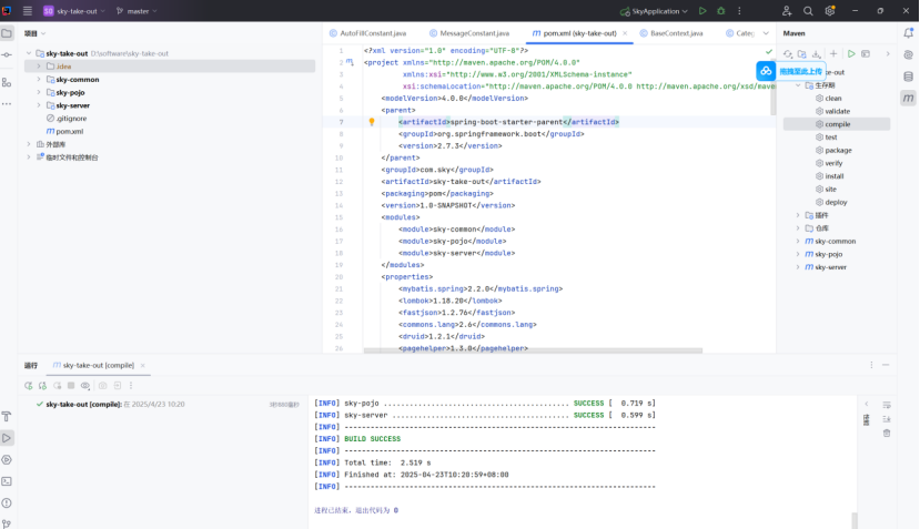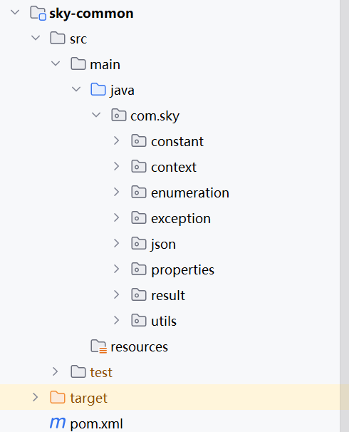 第一个sky-commom通常放需要的工具类,通用配置,常量等跨模块共享的代码